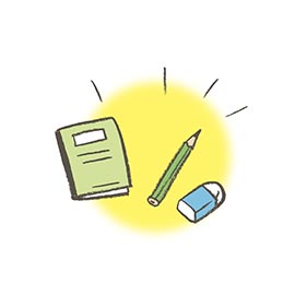 書くために使う道具のこと。鉛筆や消しゴム。