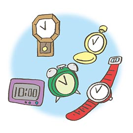 時間を計ったり、時こくをしめしたりするきかい。
