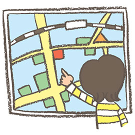 実際の道や町などが、書かれているもの。