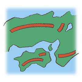 山の多い土地。