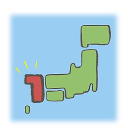 日本の列島の4つの島のうち、南西のはしにある島のこと。