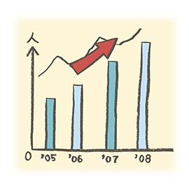 増えて多くなること。