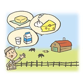 牛などを飼って、牛乳をとったり、牛乳からバターなどをつくる農業のこと。